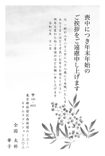 喪中により年賀欠礼する旨
